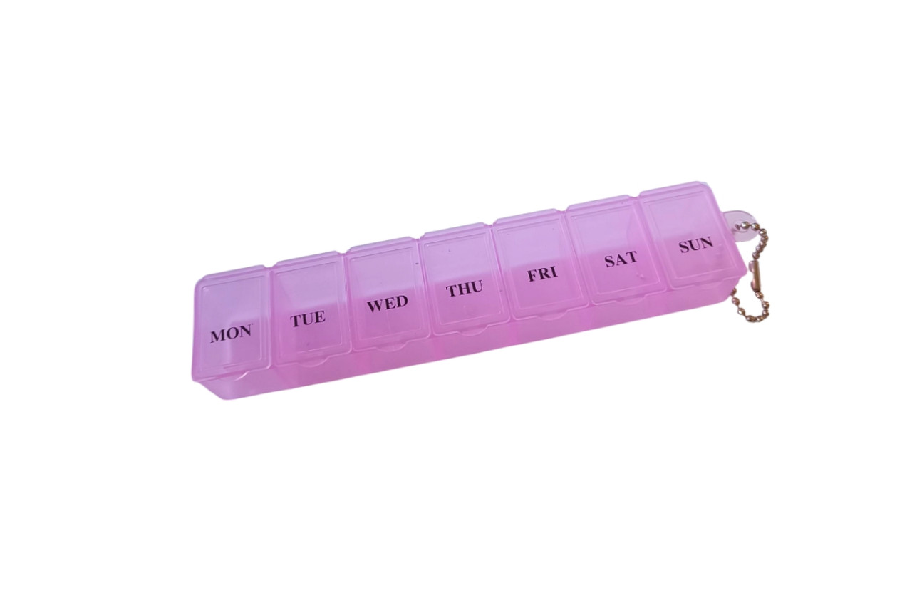 Таблетниця органайзер для таблеток 7комірок (1тиждень) з ланцюжком рожевий